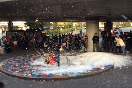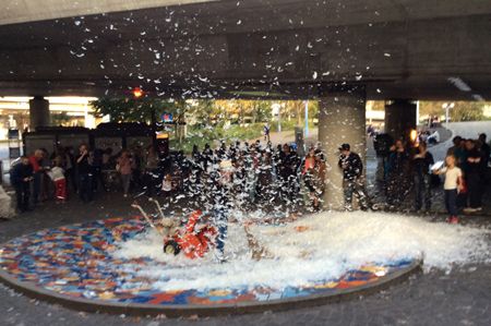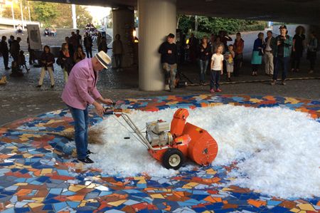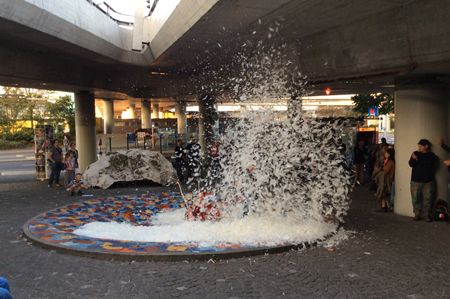 2014 Zürich «Frau Holle, 98 Jahre nach Dada», Happening im Rahmen von «le terrain vague» auf dem Hardplatz, Zürich.