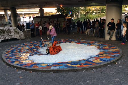 Diese zweite Aktion mit der Schneefräse entstand auf Initiative von leterrainvague.ch auf dem Hardplatz, Zürich, einem gestalterischen Unort neben- und unterhalb von einem wichtigen Verkehrsknoten. Inhaltlich verortet ist die Aktion standortbezogen mit nachgesagten Zürcher Attributen wie Willen und Fleiss und ihnen entsprechenden Motiven wie Lohn, Einfluss und Macht.